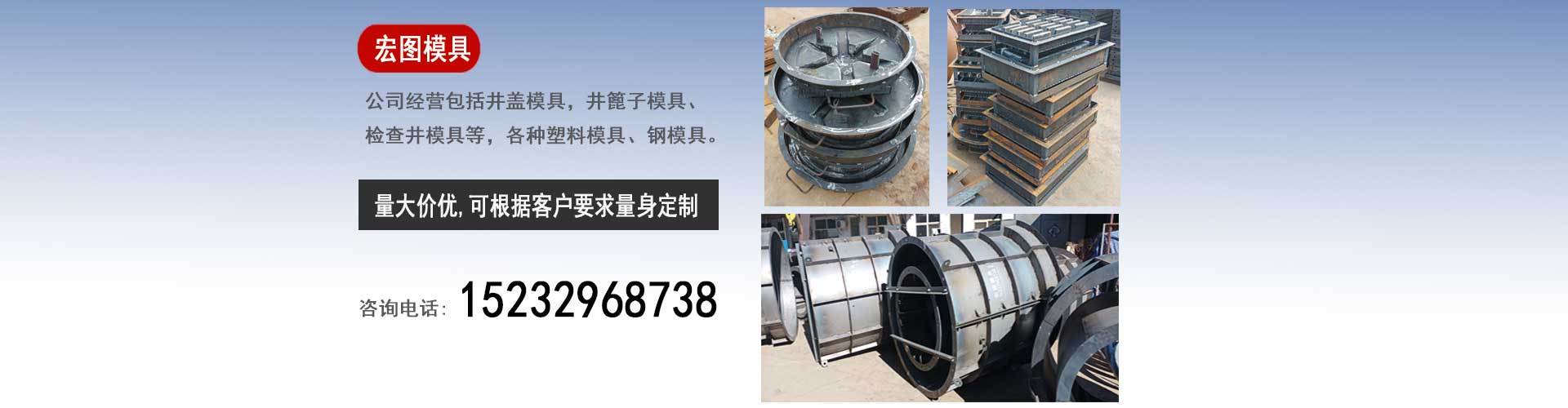 保定宏圖檢查井蓋模具廠是一家集設(shè)計、研發(fā)、生產(chǎn)、銷售為一體的企業(yè),我廠主要經(jīng)營:水泥井蓋模具,預(yù)制井蓋塑料模具,下水井蓋鋼模具,雨水井篦子模具,排水井篦子塑料模具,污水井篦子鋼模具,混凝土檢查井模具,污水檢查井鋼模具等。我廠的賣的不僅僅是模具,更是一份保障,一份誠信,一份放心,我廠的銷售宗旨是"以誠信為本,做最好的模具,賣最便宜的價格"。保定宏圖檢查井蓋模具廠的模具產(chǎn)品銷往全國的30多個省市區(qū)及海外受到了廣大用戶的好評。